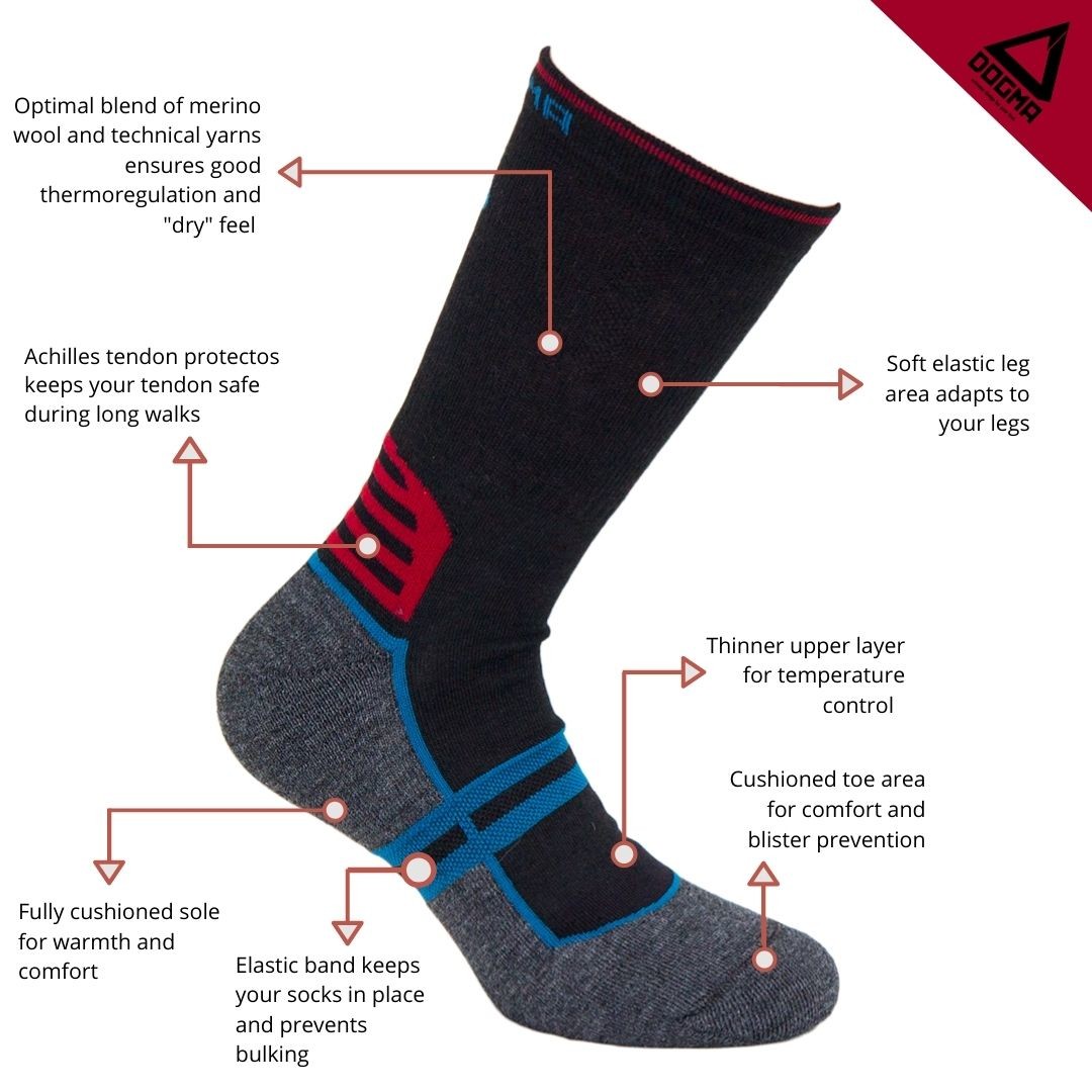 Yeti bietet eine perfekte Mischung aus schnell trocknenden Materialien und weicher Merinowolle. Die voll gepolsterte Schuhsohle bietet ein besseres Gefühl und Wärme. Die längere Manschette verhindert dabei Reizungen durch die Wanderschuhe, der Achillessehnenschutz schützt Ihre empfindlichen Füße. Entworfen für moderne Abenteurer und Profis, die das ganze Jahr über Wandern möchten. Tolle Wandersocken für jede Saison.